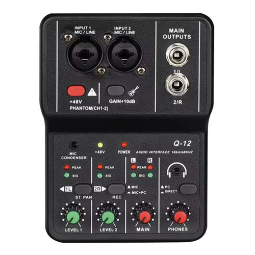 Compact 6-channel audio mixer with USB, Bluetooth, 16 DSP effects, and 3-band EQ. Designed for DJs, home studios, karaoke, and small stage performances with clear, professional sound and easy control.